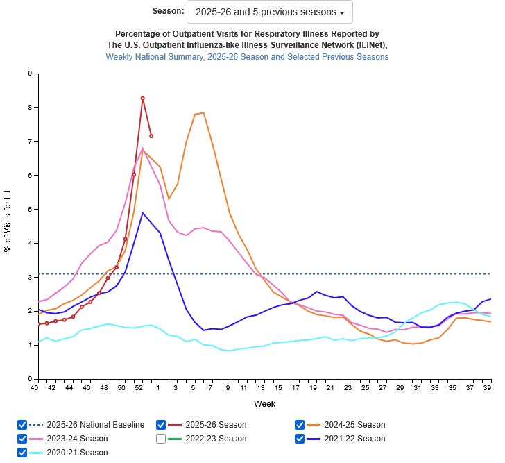 The 2025–26 flu season is dominated by influenza A H3N2, subclade K — a strain that is antigenically distinct from last year’s mix of H1N1, H3N2, and influenza B. Subclade K spreads faster, appears more capable of reinfecting people, and partially escapes prior immunity. That antigenic “freshness” meant more people — especially children — were susceptible early, accelerating the surge.